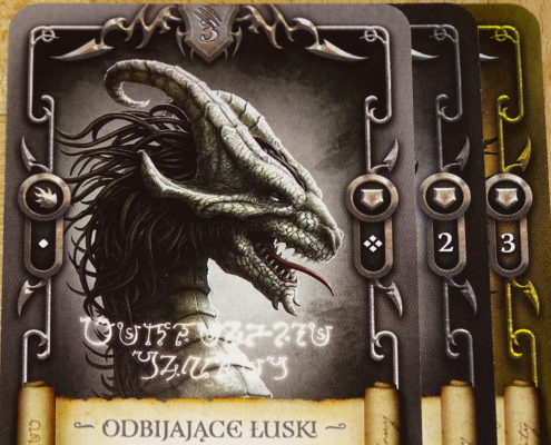 Jak na małą, dwuosobową karciankę to klimatu w tej grze mamy zaskakująco dużo. Wróćmy chociażby do przepięknych ilustracji. Smoki są namalowane w tak sugestywny sposób, że twórcy CGI w aktorskim Wiedźminie powinni spalić się ze wstydu. Wszyscy wiemy, że oprawa graficzna jest bardzo ważną częścią budowania atmosfery w grze i tutaj autorzy stanęli na wysokości zadania.