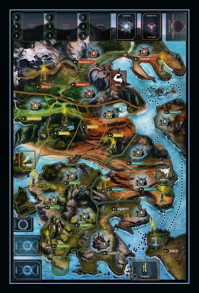 Zmieniony został warunek zwycięstwa „król królów”. Od teraz wybudowanie w pełni jednego z monumentów nie oznacza końca gry. W prototypie w takim momencie wygrywała osoba kontrolująca największą liczbę miast. Teraz po wzniesieniu monumentu, następuje odliczanie trzech kolejnych tur i dopiero wtedy zakończona zostanie gra (o ile nikt nie skończy jej w inny sposób). Wygrywa wtedy osoba kontrolująca region z tym konkretnym, wybudowanym w pełni monumentem. Musiałbym to przetestować, ale mam wrażenie, że zwykle będzie to monument Hermesa (geograficznie najprostszy do utrzymania), który zostanie obstawiony przez Helenę, lub Achillesa.