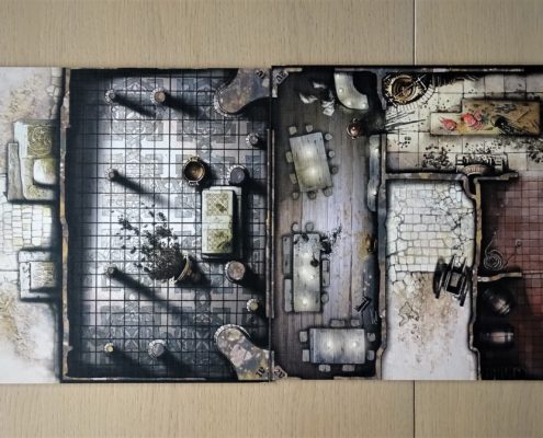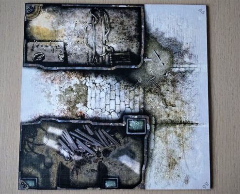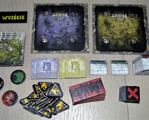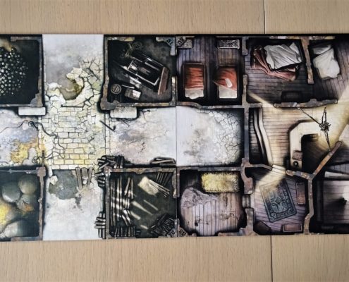 Kafle terenów przypominają mi te z Posiadłości Szaleństwa Drugiej Edycji, co według mnie jest komplementem. Pasują do tematyki gry i są dwustronne co po raz kolejny zwiększa regrywalność tytułu.