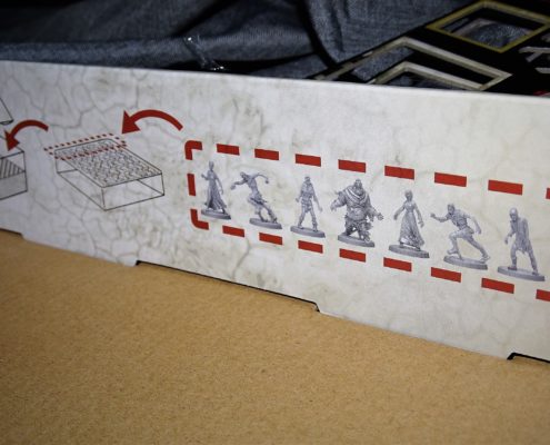 Same figurki są bardzo dobrze zabezpieczone i świetnie prezentują się w pudełku. Co ciekawe CMON umieścił na pudełeczku instrukcję pakowania gry po jej zakończeniu, żeby uniknąć masy pytań w stylu