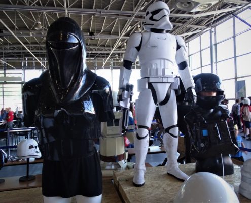 Sporo udało mi się dowiedzieć o planszówkach, a przecież jeszcze tyle rzeczy było do zobaczenia na Pyrkonie… Przede wszystkim była, prowadzona przez Jakuba Ćwieka, Maskarada z prezentacją laureatów w konkursie Planszowa Gra Roku 2018 (o czym więcej w podsumowaniu miesiąca). Z najciekawszych prelekcji mógłbym wymienić chociażby tę o tworzeniu science-fiction w dzisiejszych czasach, o roli faktów historycznych w fantastyce, czy panel z autorami gier planszowych. Można było nacieszyć swój wzrok modelami z przeróżnych gier bitewnych od tych spod sztandaru Star Wars, przez Warhammera 40k, aż po mniej znane systemy z czasów Rzeczpospolitej Szlacheckiej. Silna była także reprezentacja fanów Star Treka, czy Gwiezdnych Wojen, którzy prezentowali skarby swojej kolekcji, a ja mogłem cieszyć się jak małe dziecko w Legolandzie. Z pewnością będę chciał wrócić do Poznania na Pyrkon w przyszłym roku, ponieważ jest to bez wątpienia święto wszystkich fanów fantastyki w Polsce!