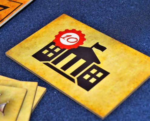W przypadku prototypu nie ma sensu szczegółowo analizować jakości i ilości komponentów. Wszystko się zmienia płynnie jeszcze na etapie kampanii i to co mam w ręku pewnie będzie się różnić od ostatecznej zawartości pudełka. Na chwilę obecną w grze mamy dziewięć dużych plansz miast, które będziemy sukcesywnie wyzwalać w czasie rozgrywki. Plansze prezentują się dobrze, tak samo żetony Virtuti Militari jak i punktów zwycięstwa stylizowanych na kokardy narodowe. Każdy z pięciu graczy będzie miał swoje pionki, służące do oznaczania wykonywanych akcji, a także podstawową talię kart. A propos kart – są one podzielone na pięć talii, które konsekwentnie będą wchodzić na stół wraz z postępem rozgrywki. Każda z tych kart jest mocno osadzona w realiach historycznych i posiada zdjęcie z epoki, które świetnie wyglądają i budują klimat.