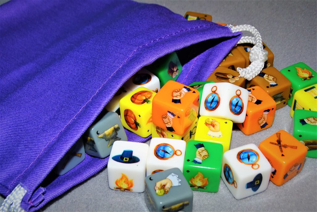 Każdy z graczy otrzyma swój woreczek, z którego będzie losowo wyciągał odpowiednią liczbę kości w turze. Od nas zależy jakie kostki się w nim znajdą, ale o tym które się pojawią w danej turze decyduje Tyche.