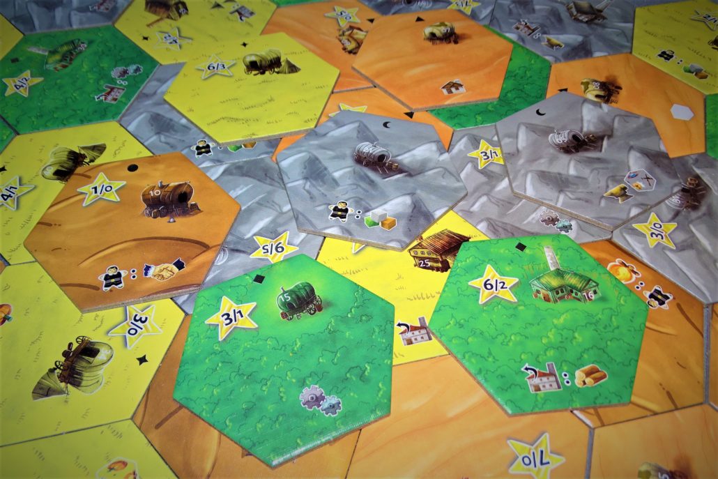 Na każdym z nich mamy kolorystycznie i ikonograficznie określony rodzaj terenu. Ważniejsza jest jednak specjalna korzyść, którą taki teren oferuje. Mogą to być: zwiększenie limitu kości w turze, dodatkowe zasoby, specjalne akcje, fabryki pozwalające przerabiać kostki graczy na zasoby itd.