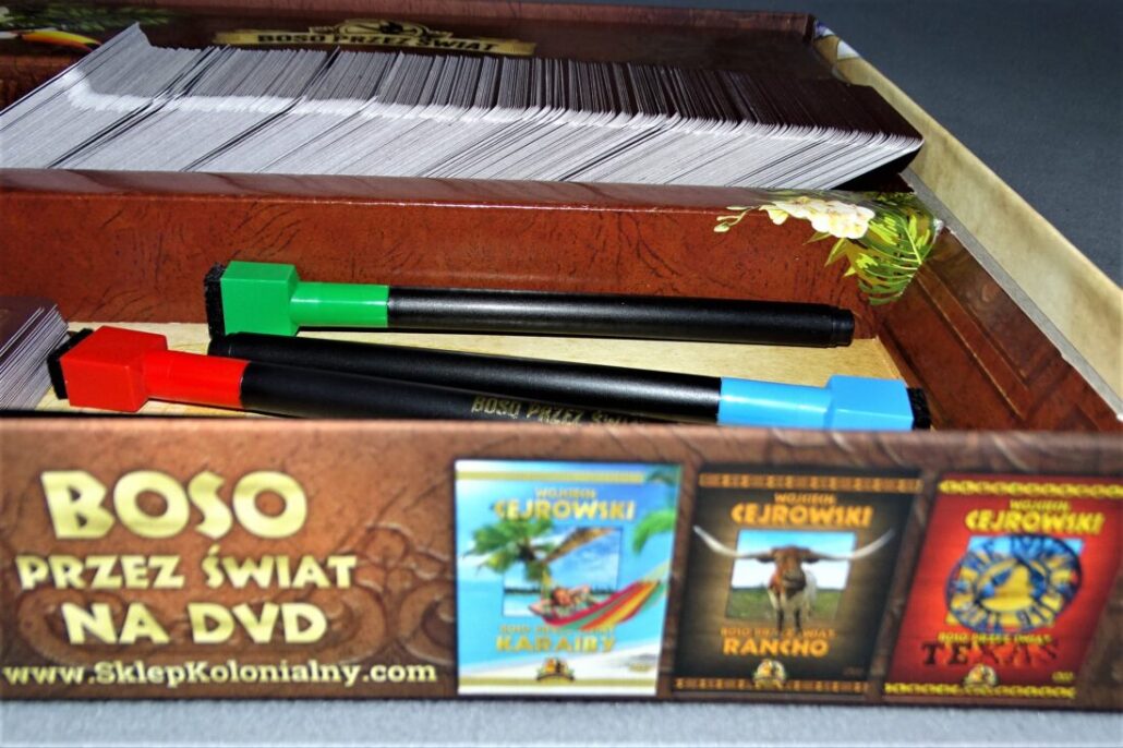W odcinku podcastu uKaimady – tym o wstydzie – przyznaliśmy, że bardzo lubimy twórczość Wojciecha Cejrowskiego. Z przyjemnością zapoznajemy się z jego książkami, filmami podróżniczymi, czy audycjami radiowymi, choć zwłaszcza te ostatnie potrafią być bardzo kontrowersyjne. Dawno temu graliśmy w „polecane” przez WC Gringo, czyli polskie wydanie francuskiego Skulla. Bardzo przyjemna, ale wtórna gra, w której motyw podróżniczy był wciśnięty na siłę. Ucieszyliśmy się na wieść o powstaniu pełnoprawnej planszówki, której współautorem miał być wspomniany człowiek wielu profesji. Po otrzymaniu egzemplarza (a nawet dwóch) czym prędzej sięgnęliśmy po mazaki i zaczęliśmy malować po planszy. Zaraz, zaraz… jak to malować po planszy?