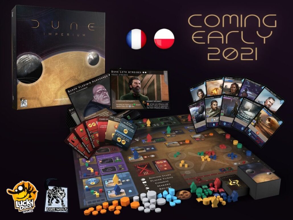 Jeśli obecność na polskim rynku wydawniczym zaczynasz od nowej gry Uwe Rosenberga (jakkolwiek byśmy jej nie oceniali) i genialnego Watergate (tutaj akurat byliśmy z gry bardzo zadowoleni) to wiadomo, że mamy do czynienia z nowym, mocnym graczem. Kolejnym krokiem Lucky Duck Games było wypuszczenie pięknego Calico, serii gier kieszonkowych (fantastyczni Pionierzy!) i – a dla Marysi nawet przede wszystkim – imprezowi Paranormalni Detektywi. Nie zapominajmy o kolejnej wersji uwielbianych w Polsce Kronik Zbrodni – 1400 – godnego następcy pierwowzoru wydawanego w kraju przez FoxGames. Prawdziwa bomba czeka nas jednak w ciągu najbliższych miesięcy. Dune Imperium zbiera zachwycające opinie w Stanach Zjednoczonych. Na BGG może się poszczycić oceną 8.5, co przy ponad 1,2 tysiącach głosujących oznacza miejsce w pierwszej 700-ce rankingu. Kwestią czasu jest kiedy Dune pójdzie zdecydowanie wyżej, a stawiam dolary przeciwko orzechom, że już niedługo wyląduje w pierwszej setce. Premiera Dune Imperium jest najbardziej oczekiwanym przeze mnie momentem pierwszego półrocza w polskim świecie planszówkowym.